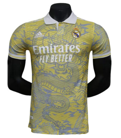 2025-26 Real Madrid Men’s Polo Shirt Dragon Pattern Yellow Jersey