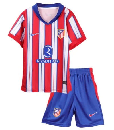 $30.0024-25 Atletico Madrid Home Soccer Kids Kit Jersey+Shorts